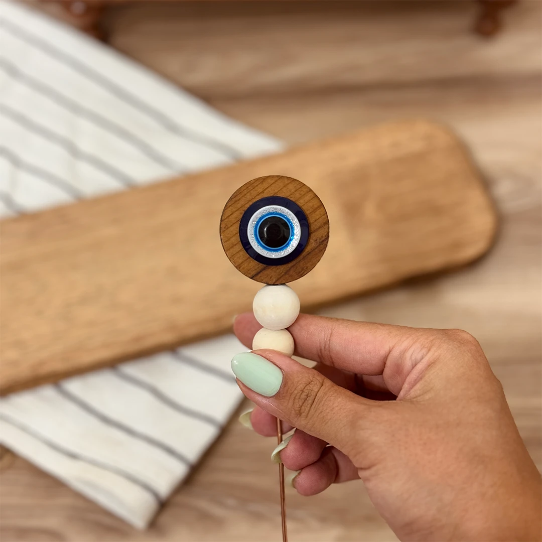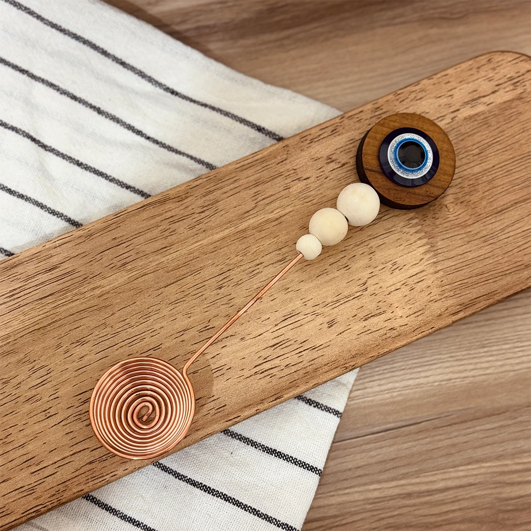 دسته ی این محصول ترکیب چوب و رزین و مهره دیزاین شده